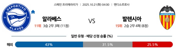 [라리가] 10월21일 토토분석 알라베스 vs 발렌시아 스포츠분석