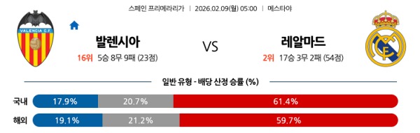 2월09일 발렌시아 vs 레알 마드리드 토토분석