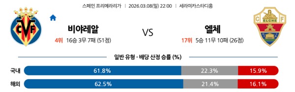 [라리가] 3월08일 토토분석 비야레알 vs 엘체 스포츠분석