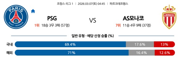 3월07일 파리생제르맹 vs AS모나코 토토분석