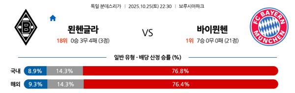 [분데스] 10월25일 토토분석 묀헨글라트바흐 vs 바이에른 뮌헨 스포츠분석