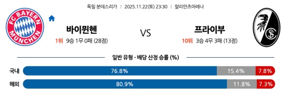 11월22일 바이에른 뮌헨 vs 프라이부르크 토토분석