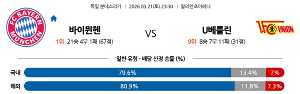 [분데스] 3월21일 토토분석 바이에른 뮌헨 vs 우니온 베를린 스포츠분석
