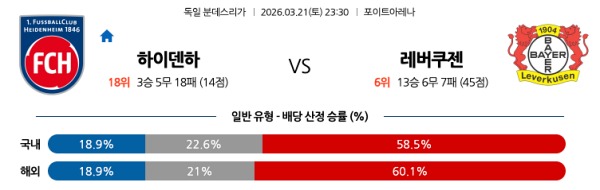 [분데스] 3월21일 토토분석 하이덴하임 vs 레버쿠젠 스포츠분석