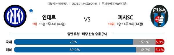 [세리에A] 1월24일 토토분석 인터 밀란 vs 피사SC 스포츠분석
