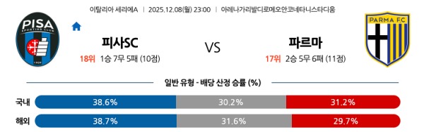 12월8일 피사SC vs 파르마 칼초 토토분석