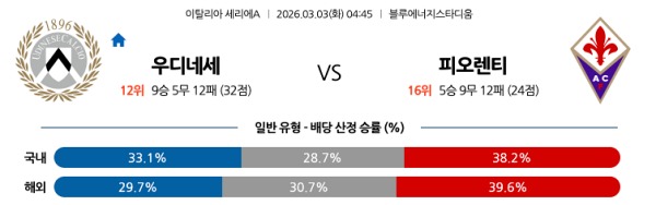[세리에A] 3월03일 토토분석 우디네세 칼초 vs ACF 피오렌티나 스포츠분석