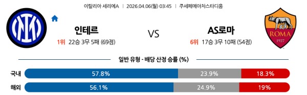 [세리에A] 4월06일 토토분석 인테르 밀란 vs AS 로마 스포츠분석