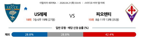 [세리에A] 4월21일 토토분석 레체 vs 피오렌티나 스포츠분석