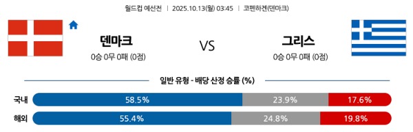 [월드컵예선] 10월13일 토토분석 덴마크 vs 그리스 스포츠분석