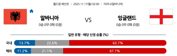 11월17일 알바니아 vs 잉글랜드 토토분석