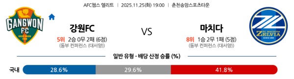 [AFC] 11월25일 토토분석 강원 FC vs 마치다 젤비아 스포츠분석