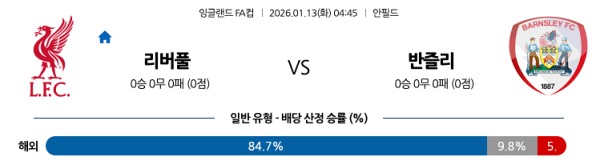 1월13일 리버풀 vs 반슬리 토토분석