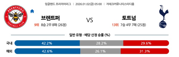 [EPL] 1월2일 토토분석 브렌트포드 vs 토트넘 홋스퍼 스포츠분석