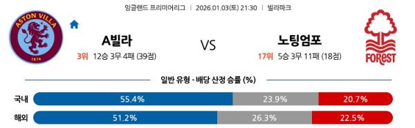 [EPL] 1월3일 토토분석 애스턴 빌라 vs 노팅엄 포레스트 스포츠분석