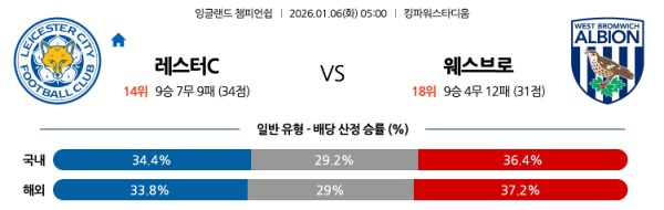1월5일 레스터 시티 vs 웨스트 브로미치 토토분석