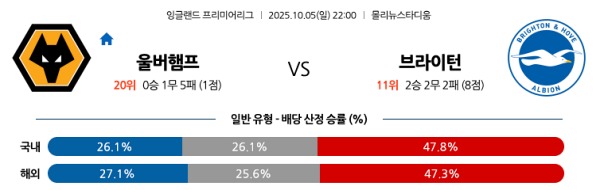 10월05일 울버햄튼 vs 브라이턴 토토분석