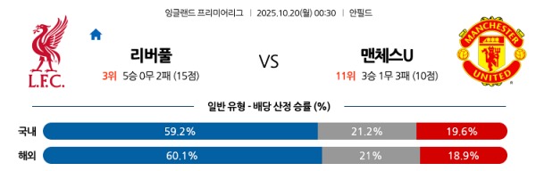 10월20일 리버풀 FC vs 맨체스터 유나이티드 토토분석