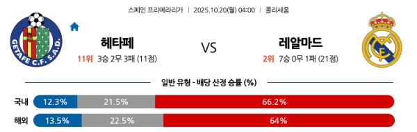 10월20일 헤타페 CF vs 레알 마드리드 토토분석