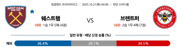 [EPL] 10월21일 토토분석 웨스트햄 vs 브렌트퍼드 스포츠분석