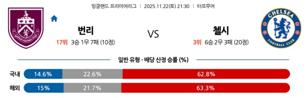 [EPL] 11월22일 토토분석 번리 vs 첼시 스포츠분석