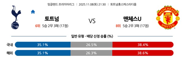 11월8일 토트넘 홋스퍼 vs 맨체스터 유나이티드 토토분석