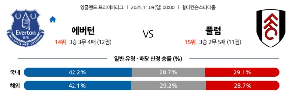 [EPL] 11월9일 토토분석 에버턴 vs 풀럼 스포츠분석