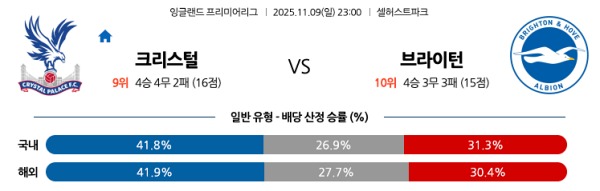 [EPL] 11월9일 토토분석 크리스탈 팰리스 vs 브라이턴 스포츠분석