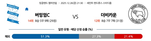 12월26일 버밍엄시티 vs 더비 카운티 토토분석