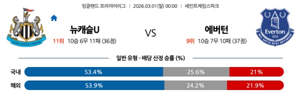 3월01일 뉴캐슬유나이티드 vs 에버턴 토토분석
