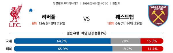 [EPL] 3월01일 토토분석 리버풀 FC vs 웨스트햄 스포츠분석
