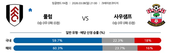 3월08일 풀럼 vs 사우샘프턴 토토분석