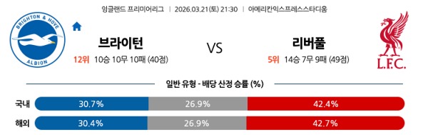 [EPL] 3월21일 토토분석 브라이턴 vs 리버풀 스포츠분석