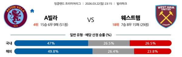 3월22일 애스턴빌라 vs 웨스트햄 토토분석