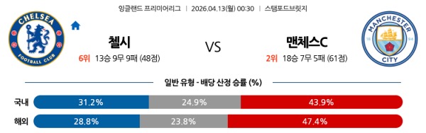[EPL] 4월13일 토토분석 첼시 vs 맨체스터 시티 스포츠분석