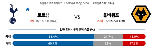 9월28일 토트넘 홋스퍼 vs 울버햄튼 토토분석