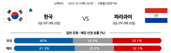 [INTL] 10월14일 토토분석 대한민국 vs 파라과이 스포츠분석