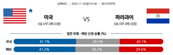 [INTL] 11월16일 토토분석 미국 vs 파라과이 스포츠분석