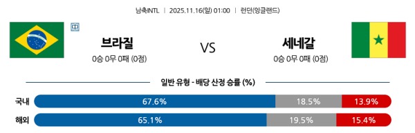[INTL] 11월16일 토토분석 브라질 vs 세네갈 스포츠분석