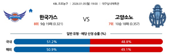 [KBL] 1월5일 토토분석 한국가스공사 vs 고양 소노 스포츠분석