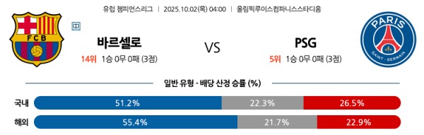 10월02일 FC 바르셀로나 vs 파리 생제르맹 토토분석