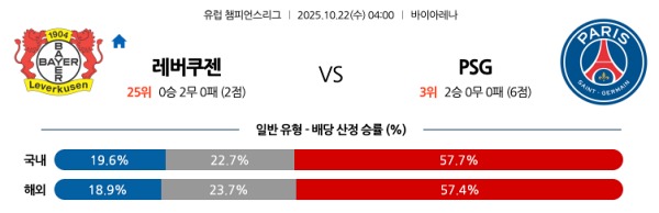 10월22일 레버쿠젠 vs 파리 생제르맹 토토분석