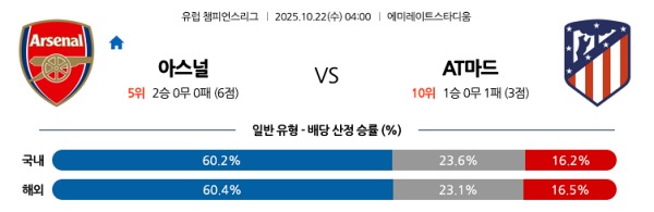 [UEFA] 10월22일 토토분석 아스널 vs AT 마드리드 스포츠분석