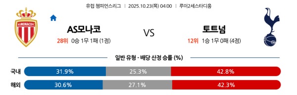 10월23일 AS 모나코 vs 토트넘 홋스퍼 토토분석