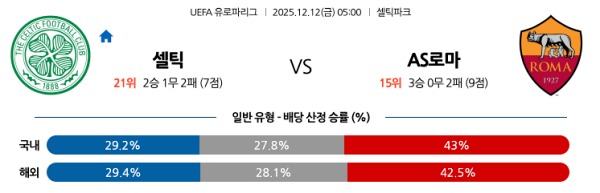 12월12일 셀틱 FC vs AS 로마 토토분석