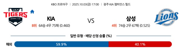 [KBO] 10월03일 토토분석 KIA vs 삼성 스포츠분석