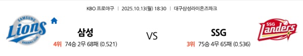 [KBO] 10월13일 토토분석 삼성 vs SSG 스포츠분석