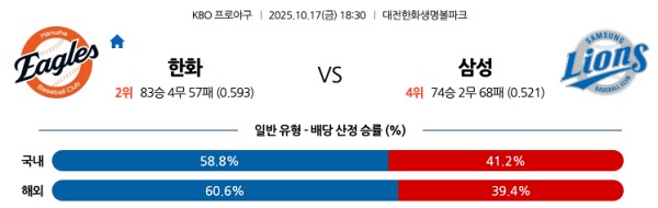 [KBO] 10월17일 토토분석 한화 vs 삼성 스포츠분석