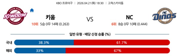 [KBO] 4월21일 토토분석 키움 vs NC 스포츠분석
