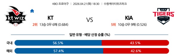 [KBO] 4월21일 토토분석 KT vs KIA 스포츠분석